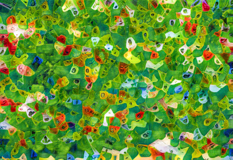 緑の中に何やら生物がいるように見えるカワイイ絵です。